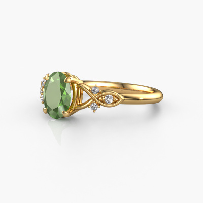 This 14 Carat gold ring is called Azra OVL and is set with 8x6 mm tourmaline green. Are you looking for a classic gold engagement ring which you can customize to your own liking? This classic engagement ring is set with tourmaline green which is carefully selected for this specific ring in order to create the best effect. Our expert goldsmith will create your ring in our own crafting studio, where the tourmaline green will be set with great care. The ring will then be polished till it shines perfectly. Nothing but the best for the love of your life! The great thing about our online tool is, that you can compile your own jewelry into a unique, personalized piece. Each piece of jewelry is made by a team of passionate goldsmiths and jewel designers. This will make your crown jewel truly eye-catching.After receiving your order, our goldsmiths will start the creative process of making your Azra OVL engagement ring. We don't keep stock. This is advantageous because these costs will not be passed on to you. Therefore, we can offer jewelry at exceptionally low prices.Do you have a specific ring in mind? One you came across somewhere. Please feel free to tell us your wishes and we will turn your design into a unique engagement ring. You can follow the development of your ring design because we use 3D drawings. This gives you a realistic preview of your design. We will gladly send you a non-binding offer, based on a fair price/ quality ratio. It will amaze you.To make it easier for you, we offer a 30 day return policy. Check our terms and conditions.
