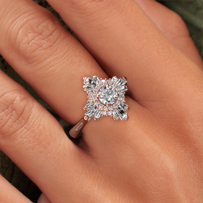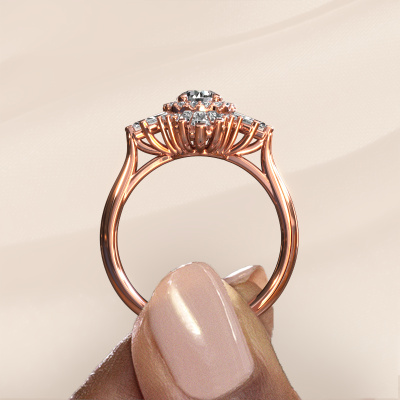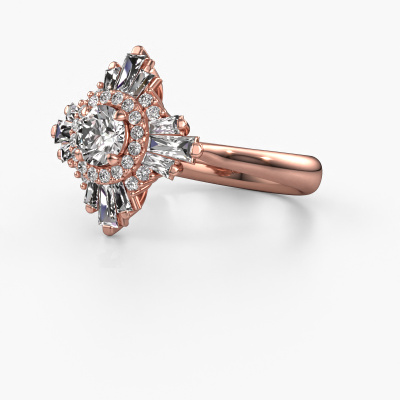 This 14 Carat rose gold ring is called Thalia and is set with 1.207 crt diamond. An extraordinary rose gold vintage ring. One that will surely make the love of your life shine like a diamond! That is what we hope to achieve. This vintage engagement ring is set with exquisite diamond. Whichever gemstone you choose from our selection, is up to you. The gemstone is selected with great care because we believe your special engagement ring must be adorned with nothing but the most beautiful gemstone. Wouldn't you agree? Our expert goldsmith will design your ring in our own crafting studio, where the diamond will be set with great precision. The ring will then be polished till it shines perfectly. Nothing but the best for the love of your life! This jewel is made with passion and love by one of our master goldsmiths.After receiving your order, our goldsmiths will passionately start the creative process of making your engagement ring in our own studio. Because we don't have a big stockpile, these costs will not be passed on to you. Our pricing is proof of that! We offer top quality jewels at lowest price, guaranteed.Have you found a specific engagement ring somewhere which you would like to give to your loved one? Please feel free to express your wishes to our jewel designers because we would be honored to turn your design into a vintage engagement ring. You can follow the development of your ring design because we use 3D drawings. This gives you a realistic preview of how your design will look. You can also preorder a dummy. A dummy is a plastic ring, which can be shaped according your ring design. You can try it on and check if its width and size are suitable for you. We will gladly send you a non-binding offer, based on a fair price/ quality ratio. It will amaze you, considering the quality of the ring and gemstones.To make it easier for you, we offer a 30 day return policy. Check our terms and conditions.