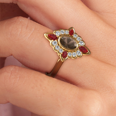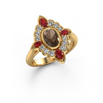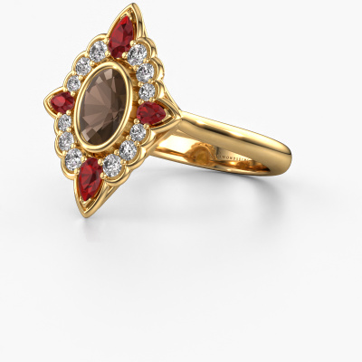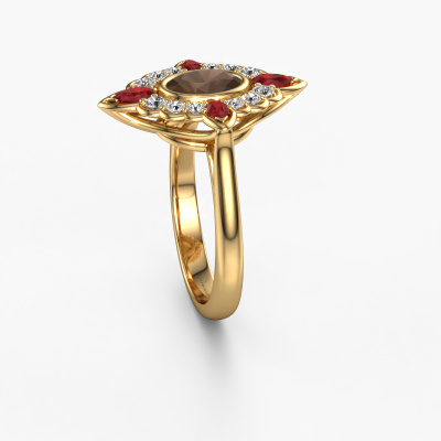 This 14 Carat gold ring is called Door and is set with 7x5 mm smokey quartz. An extraordinary gold vintage ring. One that will surely make the love of your life shine like a diamond! That is what we hope to achieve. This vintage engagement ring is set with exquisite smokey quartz. Whichever gemstone you choose from our selection, is up to you. The gemstone is selected with great care because we believe your daring engagement ring must be adorned with nothing but the most beautiful gemstone. Wouldn't you agree? Our expert goldsmith will design your ring in our own crafting studio, where the smokey quartz will be set with great precision. The ring will then be polished till it shines perfectly. Nothing but the best for the love of your life! This jewel is made just for you by our master goldsmiths in our own studio.After receiving your order, our goldsmiths will passionately start the creative process of making your engagement ring in our own studio. Because we don't have a big stockpile, these costs will not be passed on to you. Our pricing is proof of that! We offer top quality jewels at lowest price, guaranteed.Our team adds new designs to our online collection daily. Our designers and goldsmiths work together in creating the best design. We strive to offer a diverse collection of jewels. Perhaps you have a specific jewel design in mind. One you came across somewhere. Please contact us for a free consultation. We will make you an offer, based on a fair price/ quality ratio, that will baffle you.To make it easier for you, we offer a 30 day return policy. Check our terms and conditions.
