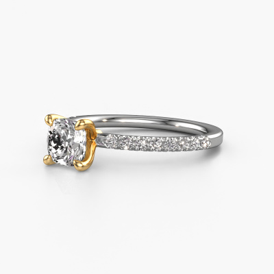 The ring shown above is called the Crystal CUS 2. We call this type of ring a pavé solitaire ring because it has one center gemstone and a band that is also pave set with gemstones. The 14 Carat white gold engagement ring is set with a cushion 1.00 crt diamond center stone and the band is pave set with diamond gemstones. Each jewel is made just for you by our master goldsmiths in our own studio.This classic white gold pavé solitaire engagement ring has an exquisite cushion diamond center stone. To further accentuate the center stone, the band is fully set with more diamonds. Its open prong setting allows light to strike the diamond from various angles and this adds sparkle to your diamond ring. The photo shown above depicts the goldsmith's carefully handcrafted details of the ring. The high positioning of the center stone is truly eye-catching. The perfect engagement ring for the crown jewel of your life! After receiving your order, our goldsmiths will start the creative process of making your Crystal CUS 2 engagement ring. We don't keep stock. This is advantageous because these costs will not be passed on to you. Therefore, we can offer jewelry at exceptionally low prices.Different styles of new rings are made daily by our team. Perhaps you have found a pavé solitaire engagement ring somewhere. One you would like to give to your loved one. Please feel free to share your thoughts and design with our jewel designers. We would love to turn your design into a classic engagement ring. You can follow the development of your ring design because we use very detailed 3D drawings. On top of that, you can order a dummy of the design. A dummy is a plastic ring, which can be shaped according your ring design. You can try it on and check if the engagement ring is up to standard. We will gladly send you a non-binding offer, based on a fair price/ quality ratio. The offer will baffle you, considering the quality of the ring and gemstones.To make it easier for you, we offer a 30 day return policy. Check our terms and conditions.