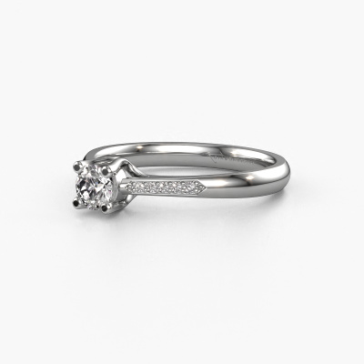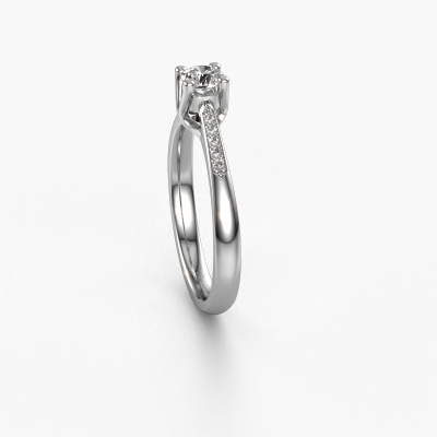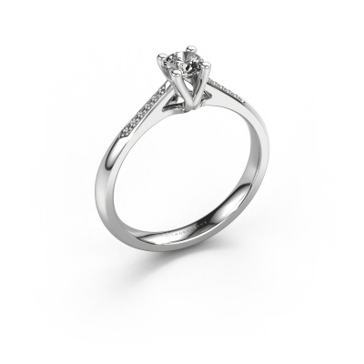 The ring shown above is called the Janna 2. We call this type of ring a pavé solitaire ring because it has one center gemstone and a band that is also pave set with gemstones. This promise ring is made in 14 Carat white gold set with a 0.25 crt round diamond, and pave set diamonds at the sides. Each piece of jewelry is made just for you by our master goldsmiths in our own studio.This classic white gold pavé solitaire promise ring has an exquisite round diamond center stone. To further accentuate the center stone, the band is set full with more diamonds. Its open prong setting allows light to strike the diamond from various angles and this adds sparkle to your diamond ring. The photo shown above depicts the goldsmith's carefully handcrafted details of the ring. The high positioning of the center stone is truly eye-catching. The perfect promise ring for the crown jewel of your life!By using a combination of the latest modern techniques, combined with ancient crafting, we can make all our promise ring in our own studio. Each jewel is made to order. This is advantageous because we can offer you a price you won't find anywhere else.Do you have a specific ring in mind? One you came across somewhere. Please feel free to tell us your wishes and we will turn your design into a unique promise ring. You can follow the development of your ring design because we use 3D drawings. This gives you a realistic preview of your design. We will gladly send you a non-binding offer, based on a fair price/ quality ratio. It will amaze you.To make it easier for you, we offer a 30 day return policy. Check our terms and conditions.