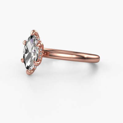 This 14 Carat rose gold ring is called Simone MRQ 2 and is set with 1.04 crt diamond. What is it that makes your relationship unique? What is it about her that makes you want to bend down on one knee? The unique bond between the two of you is emphasized by an equally unique ring. A one of a kind round solitaire engagement ring made especially for her. That is why this fantasy ring fits her like a glove. Each specific detail of this round rose gold diamond set engagement ring is hand-picked, crafted and polished by our expert goldsmith. The result is an exquisite ring, unique and perfectly crafted to perfection. That is what our expert Goldsmiths strive for. This jewel is made just for you by our master goldsmiths in our own studio.Because we design and deliver our own rings, we can offer you a engagement ring at a price you won't find anywhere else. A ring is made to order, which helps prevent excess supplies, so we can make you a great price offer. We understand it feels risky, buying your engagement ring online, but we will gladly assist in the designing process, taking your budget into consideration.Our designers and goldsmiths work together each day, creating new jewels. Perhaps you have found a nice fantasy engagement ring somewhere, which can be used to customize your unique ring. Please feel free to contact us. We will make you an offer, based on a fair price/ quality ratio, which will amaze you.To make it easier for you, we offer a 30 day return policy. Check our terms and conditions.