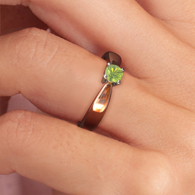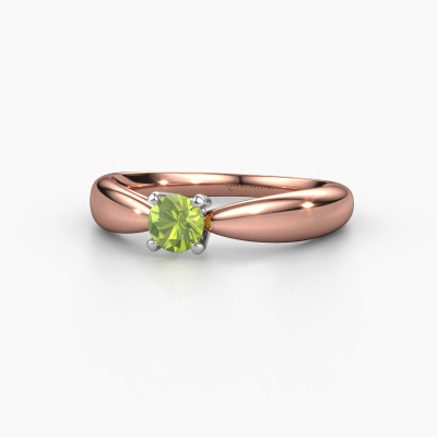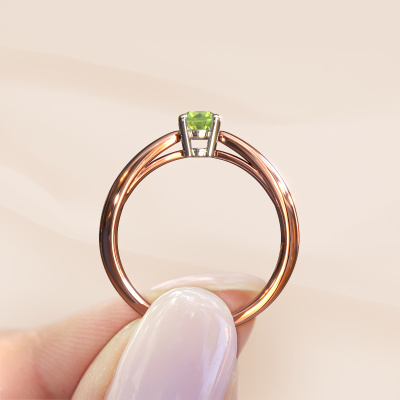 The ring shown above is called the Nichole. We call this a solitaire ring because it contains a single gemstone. The engagement ring is made in 14 Carat rose gold and has a round peridot of 4.2 mm. This extraordinary fantasy rose gold solitaire engagement ring is set with a beautiful round peridot to add sparkle to your proposal. The open prong setting allows light to strike the gemstone from various angles. Did you know a diamond represents everlasting love and fidelity? This makes it a perfect centerpiece. Our goldsmith carefully positions the gemstone of your choosing high on top of the ring, which makes it stand out. Each piece of jewelry is made just for you by our master goldsmiths in our own studio.After receiving your order, our goldsmiths will passionately start the creative process of making your engagement ring in our own studio. Because we don't have a big stockpile, these costs will not be passed on to you. Our pricing is proof of that! We offer top quality jewels at lowest price, guaranteed.Do you have a specific ring in mind? One you came across somewhere. Please feel free to tell us your wishes and we will turn your design into a unique engagement ring. You can follow the development of your ring design because we use 3D drawings. This gives you a realistic preview of your design. We will gladly send you a non-binding offer, based on a fair price/ quality ratio. It will amaze you.To make it easier for you, we offer a 30 day return policy. Check our terms and conditions.