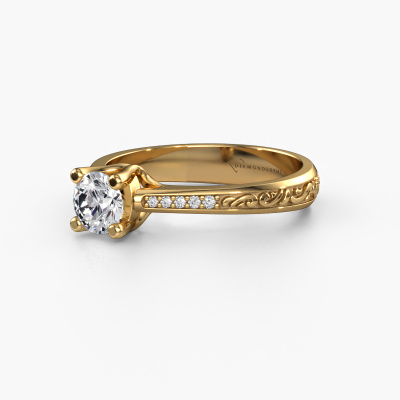 This 14 Carat gold ring is called Mei and is set with diamond. An extraordinary gold vintage ring. One that will surely make the love of your life shine like a diamond! That is what we hope to achieve. This Celtic engagement ring is set with exquisite diamonds. Whichever gemstone you choose from our selection, is up to you. The gemstone is selected with great care because we believe your engagement ring must be adorned with nothing but the most beautiful gemstone. Wouldn't you agree? Our expert goldsmith will design your ring in our own artisan studio, where the diamond will be set with great precision. The ring will then be polished till it is absolutely perfect. Nothing but the best for the love of your life! This jewel is made just for you, with attention to detail and design.Are you on a budget? Please feel free to contact us, so we can go discuss your options. We offer our engagement rings at guaranteed best price, because we make them to order. You won't find such a price anywhere else!Our team adds new designs to our online collection daily. Our designers and goldsmiths work together in creating the best design. We strive to offer a diverse collection of jewels. Perhaps you have a specific jewel design in mind. One you came across somewhere. Please contact us for a free consultation. We will make you an offer, based on a fair price/ quality ratio, that will baffle you.To make it easier for you, we offer a 30 day return policy. Check our terms and conditions.