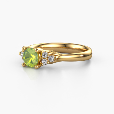 This 14 Carat gold ring is called Monika RND and is set with 5.5 mm peridot. Does your girlfriend fancy exclusive jewelry? Or would you like to show her that she deserves the finest jewelry? This gold ring is pure craftsmanship, love and passion combined with the latest techniques coming together in perfect harmony. It requires a keen eye, patience and a skillful hand to mold this ring into perfection. Just the job for our expert goldsmith! The peridot set gemstones gives this gold ring an extra glamorous appearance. Customize the style of the ajour engagement ring to her liking with a wide variety of precious metals and gemstones which you select. That is how you create a unique ring for the most exclusive woman in your life! This jewel is made with passion and love by one of our master goldsmiths.Are you on a budget? Please feel free to contact us, so we can go discuss your options. We offer our engagement rings at guaranteed best price, because we make them to order. You won't find such a price anywhere else!Have you found a specific engagement ring somewhere which you would like to give to your loved one? Please feel free to express your wishes to our jewel designers because we would be honored to turn your design into a classic engagement ring. You can follow the development of your ring design because we use 3D drawings. This gives you a realistic preview of how your design will look. You can also preorder a dummy. A dummy is a plastic ring, which can be shaped according your ring design. You can try it on and check if its width and size are suitable for you. We will gladly send you a non-binding offer, based on a fair price/ quality ratio. It will amaze you, considering the quality of the ring and gemstones.To make it easier for you, we offer a 30 day return policy. Check our terms and conditions.