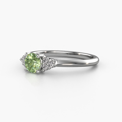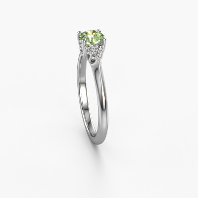 This platinum ring is called Felipa RND and is set with 5 mm green lab grown diamond. What is it that makes your relationship unique? What is it about her that makes you want to bend down on one knee? The unique bond between the two of you is emphasized by an equally unique ring. A one of a kind ajour 3-stone engagement ring made especially for her. That is why this fantasy ring fits her like a glove. Each specific detail of this ajour platinum green lab grown diamond set engagement ring is hand-picked, crafted and polished by our expert goldsmith. The result is an exquisite ring, unique and perfectly crafted to perfection. That is what our expert Goldsmiths strive for. This jewel is made just for you by our master goldsmiths in our own studio.After receiving your order, our goldsmiths will passionately start the creative process of making your engagement ring in our own studio. Because we don't have a big stockpile, these costs will not be passed on to you. Our pricing is proof of that! We offer top quality jewels at lowest price, guaranteed.Have you found a specific engagement ring somewhere which you would like to give to your loved one? Please feel free to express your wishes to our jewel designers because we would be honored to turn your design into a fantasy engagement ring. You can follow the development of your ring design because we use 3D drawings. This gives you a realistic preview of how your design will look. You can also preorder a dummy. A dummy is a plastic ring, which can be shaped according your ring design. You can try it on and check if its width and size are suitable for you. We will gladly send you a non-binding offer, based on a fair price/ quality ratio. It will amaze you, considering the quality of the ring and gemstones.To make it easier for you, we offer a 30 day return policy. Check our terms and conditions.