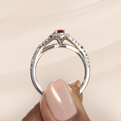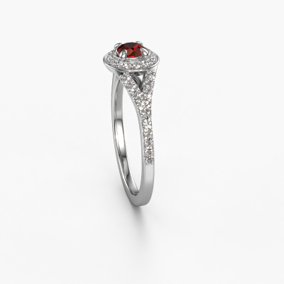 This platinum ring is called Pamela RND and is set with 4 mm garnet. This exclusive platinum halo engagement ring is a true work of art! The ornaments are crafted with a lot of patience and great passion. In order to create this ring with great precision, this craft requires a keen eye and skillful hand. A challenge which ignites a fire in our expert goldsmith. The exquisite garnet are set in a special way so they stand out even more. This gives the ring an even more glamorous appearance. The ajour engagement ring is actually unique on its own because of the gemstones which we carefully select especially for this ring. On top of that you select the precious metals which will be used to create a unique ring for the most extraordinary woman in your life! This jewel is unique in every way! Simply customize to your liking,Because we design and deliver our own rings, we can offer you a engagement ring at a price you won't find anywhere else. A ring is made to order, which helps prevent excess supplies, so we can make you a great price offer. We understand it feels risky, buying your engagement ring online, but we will gladly assist in the designing process, taking your budget into consideration.Our team adds new designs to our online collection daily. Our designers and goldsmiths work together in creating the best design. We strive to offer a diverse collection of jewels. Perhaps you have a specific jewel design in mind. One you came across somewhere. Please contact us for a free consultation. We will make you an offer, based on a fair price/ quality ratio, that will baffle you.To make it easier for you, we offer a 30 day return policy. Check our terms and conditions.