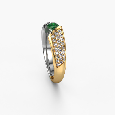 The ring shown above is called Hojalien 3. We call this a pave ring. The smaller gemstones of pave ring are set in a close row which gives it an extra shine. This 14 Carat white gold ring is set with emeralds 4.2 mm. The ring shown above is called Hojalien 3. We call this a pave ring. The smaller gemstones of pave ring are set in a close row which gives it an extra shine. Which emotion would you like to convey when you get down on one knee for her? This white gold engagement ring is pave set with stunning emeralds to represent your everlasting love. The gemstones are carefully hand selected and set by our goldsmith. The unique reflection of light on the ring can only be captured if the emeralds are set in a perfect line. During the crafting and polishing of the jewelry, light fall is constantly monitored, until the expert goldsmith is satisfied with the result. A ring designed just for you to make your loved one shine bright like a diamond. Because there is only one special person fit to wear such a unique ring! With this meaningful piece of art, the symbol of infinity, you will prove your undying love for her and that you want to share the rest of your life with no one else. How will she be able to resist? This piece of jewelry is made to shine bright around your finger. Each jewel is hand made with love by our goldsmiths.Are you on a budget? Please feel free to contact us, so we can go discuss your options. We offer our engagement rings at guaranteed best price, because we make them to order. You won't find such a price anywhere else!Our team adds new designs to our online collection daily. Our designers and goldsmiths work together in creating the best design. We strive to offer a diverse collection of jewels. Perhaps you have a specific jewel design in mind. One you came across somewhere. Please contact us for a free consultation. We will make you an offer, based on a fair price/ quality ratio, that will baffle you.To make it easier for you, we offer a 30 day return policy. Check our terms and conditions.