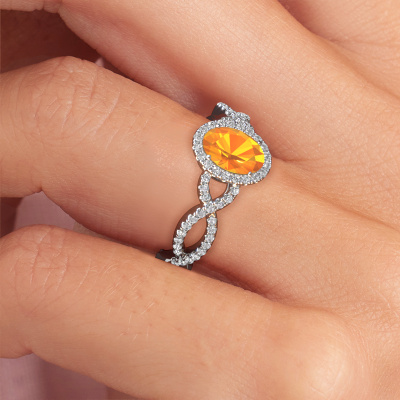 This platinum ring is called Dionne ovl and is set with 7x5 mm citrin. This exclusive platinum pavé solitaire engagement ring is a true work of art! The ornaments are crafted with a lot of patience and great passion. In order to create this ring with great precision, this craft requires a keen eye and skillful hand. A challenge which ignites a fire in our expert goldsmith. The exquisite citrin are set in a special way so they stand out even more. This gives the ring an even more glamorous appearance. The twisted engagement ring is actually unique on its own because of the gemstones which we carefully select especially for this ring. On top of that you select the precious metals which will be used to create a unique ring for the most extraordinary woman in your life! This jewel is unique in every way! Simply customize to your likingAfter receiving your order, our goldsmiths will start the creative process of making your Dionne ovl engagement ring. We don't keep stock. This is advantageous because these costs will not be passed on to you. Therefore, we can offer jewelry at exceptionally low prices.Different styles of new rings are made daily by our team. Perhaps you have found a pavé solitaire engagement ring somewhere. One you would like to give to your loved one. Please feel free to share your thoughts and design with our jewel designers. We would love to turn your design into a exclusive engagement ring. You can follow the development of your ring design because we use very detailed 3D drawings. On top of that, you can order a dummy of the design. A dummy is a plastic ring, which can be shaped according your ring design. You can try it on and check if the engagement ring is up to standard. We will gladly send you a non-binding offer, based on a fair price/ quality ratio. The offer will baffle you, considering the quality of the ring and gemstones.To make it easier for you, we offer a 30 day return policy. Check our terms and conditions.