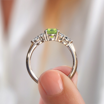 This 14 Carat white gold ring is called Melani RND and is set with peridot. How would you describe the style of the love of your life? Does she have a unique sense of style? This stunning charming white gold engagement ring can be custom made to your own or her liking. Our peridot gemstones have been carefully selected because we believe your contemporary engagement ring must be adorned with nothing but the most beautiful gemstone. Don't you agree? This jewel is made just for you by our master goldsmiths in our own studio.Because we design and deliver our own rings, we can offer you a engagement ring at a price you won't find anywhere else. A ring is made to order, which helps prevent excess supplies, so we can make you a great price offer. We understand it feels risky, buying your engagement ring online, but we will gladly assist in the designing process, taking your budget into consideration.Our team adds new designs to our online collection daily. Our designers and goldsmiths work together in creating the best design. We strive to offer a diverse collection of jewels. Perhaps you have a specific jewel design in mind. One you came across somewhere. Please contact us for a free consultation. We will make you an offer, based on a fair price/ quality ratio, that will baffle you.To make it easier for you, we offer a 30 day return policy. Check our terms and conditions.
