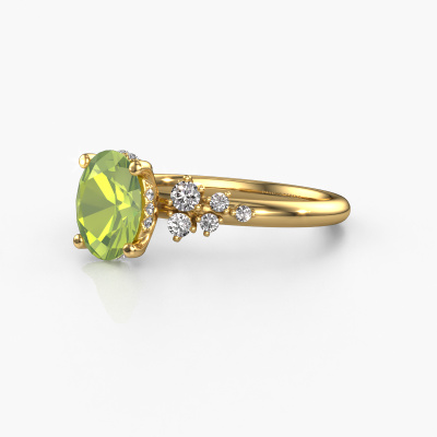 This 14 Carat gold ring is called Emma OVL and is set with peridot. How would you describe the style of the love of your life? Does she have a unique sense of style? This stunning sublime gold engagement ring can be custom made to your own or her liking. Our peridot gemstones have been carefully selected because we believe your fantasy engagement ring must be adorned with nothing but the most beautiful gemstone. Don't you agree? This jewel is made by a team of passionate goldsmiths and jewel designers. This will make your crown jewel truly eye-catching.By using a combination of the latest modern techniques, combined with ancient crafting, we can make all our engagement rings in our own studio. Each jewel is made to order. This is advantageous because we can offer you a price you won't find anywhere else.Different styles of new rings are made daily by our team. Perhaps you have found a pavé solitaire engagement ring somewhere. One you would like to give to your loved one. Please feel free to share your thoughts and design with our jewel designers. We would love to turn your design into a fantasy engagement ring. You can follow the development of your ring design because we use very detailed 3D drawings. On top of that, you can order a dummy of the design. A dummy is a plastic ring, which can be shaped according your ring design. You can try it on and check if the engagement ring is up to standard. We will gladly send you a non-binding offer, based on a fair price/ quality ratio. The offer will baffle you, considering the quality of the ring and gemstones.To make it easier for you, we offer a 30 day return policy. Check our terms and conditions.