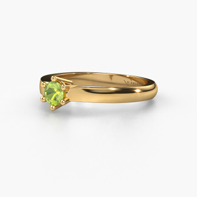 The ring shown above is called the Luna 1, we call this a solitaire ring because it contains a single gemstone. The engagement ring is made in 14 Carat gold and has a round peridot of 3.7 mm. The cool thing about our configurator is that you can compile your own piece of jewelry, into a completely personalized one. This solitaire ring is crafted in the precious metals gold with gold, but of course you are free to pick your own colors. Each piece of jewelry is made with passion and love by one of our master goldsmiths.The solitaire ring is a special type of engagement ring. Its open prong setting allows light to strike the gemstone from various angles. This classic engagement ring is a stunning eye-catcher because of the high positioning of the gemstone. In order for you to commemorate your proposal with a unique ring, we carefully adorn this solitaire ring by hand. The love of your life deserves nothing but the best. After receiving your order, our goldsmiths will start the creative process of making your Luna 1 engagement ring. We don't keep stock. This is advantageous because these costs will not be passed on to you. Therefore, we can offer jewelry at exceptionally low prices.Our designers and goldsmiths work together each day, creating new jewels. Perhaps you have found a nice classic engagement ring somewhere, which can be used to customize your unique ring. Please feel free to contact us. We will make you an offer, based on a fair price/ quality ratio, which will amaze you.To make it easier for you, we offer a 30 day return policy. Check our terms and conditions.