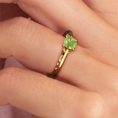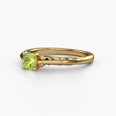 This 14 Carat gold ring is called Shannon rnd and is set with peridot. How would you describe the style of the love of your life? Does she have a unique sense of style? This stunning ajour gold engagement ring can be custom made to your own or her liking. Our peridot gemstones have been carefully selected because we believe your fantasy engagement ring must be adorned with nothing but the most beautiful gemstone. Don't you agree? This jewel is made with passion and love by one of our master goldsmiths.By using a combination of the latest modern techniques, combined with ancient crafting, we can make all our engagement rings in our own studio. Each jewel is made to order. This is advantageous because we can offer you a price you won't find anywhere else.Do you have a specific ring in mind? One you came across somewhere. Please feel free to tell us your wishes and we will turn your design into a unique engagement ring. You can follow the development of your ring design because we use 3D drawings. This gives you a realistic preview of your design. We will gladly send you a non-binding offer, based on a fair price/ quality ratio. It will amaze you.To make it easier for you, we offer a 30 day return policy. Check our terms and conditions.