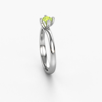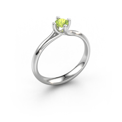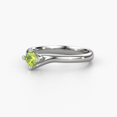 In your eyes, no one else compares to her. She is one in a million, unlike anyone else and pure? These qualities are emphasized perfectly by our modern platinum solitaire peridot ring. This peridot is carefully selected by our keen artisan goldsmiths. It equals the unique qualities of the love of your life. There is no better way to memorialize your proposal than this symbol of true love. The ring shown above is called the Dewi Round, we call this a solitaire ring because it contains a single gemstone. The engagement ring is made in platinum and has a round peridot of 4 mm. Each piece of jewelry is made to shine bright around your finger. Each jewel is hand made with love by our goldsmiths.After receiving your order, our goldsmiths will passionately start the creative process of making your engagement ring in our own studio. Because we don't have a big stockpile, these costs will not be passed on to you. Our pricing is proof of that! We offer top quality jewels at lowest price, guaranteed.Different styles of new rings are made daily by our team. Perhaps you have found a solitaire engagement ring somewhere. One you would like to give to your loved one. Please feel free to share your thoughts and design with our jewel designers. We would love to turn your design into a modern engagement ring. You can follow the development of your ring design because we use very detailed 3D drawings. On top of that, you can order a dummy of the design. A dummy is a plastic ring, which can be shaped according your ring design. You can try it on and check if the engagement ring is up to standard. We will gladly send you a non-binding offer, based on a fair price/ quality ratio. The offer will baffle you, considering the quality of the ring and gemstones.To make it easier for you, we offer a 30 day return policy. Check our terms and conditions.
