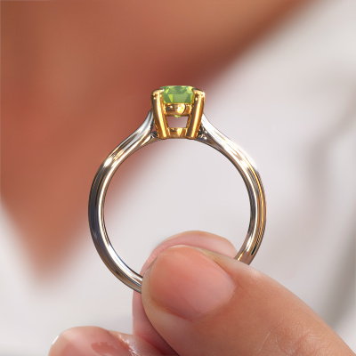 In your eyes, no one else compares to her. She is one in a million, unlike anyone else and pure? These qualities are emphasized perfectly by our contemporary white gold solitaire peridot ring. This peridot is carefully selected by our keen artisan goldsmiths. It equals the unique qualities of the love of your life. There is no better way to memorialize your proposal than this symbol of true love. The ring shown above is called the Antonia ovl 1, we call this a solitaire ring because it contains a single gemstone. The engagement ring is made in 14 Carat white gold and has a oval peridot of 8x6 mm. Each piece of jewelry is made with passion and love by one of our master goldsmiths.After receiving your order, our goldsmiths will start the creative process of making your Antonia ovl 1 engagement ring. We don't keep stock. This is advantageous because these costs will not be passed on to you. Therefore, we can offer jewelry at exceptionally low prices.Our team adds new designs to our online collection daily. Our designers and goldsmiths work together in creating the best design. We strive to offer a diverse collection of jewels. Perhaps you have a specific jewel design in mind. One you came across somewhere. Please contact us for a free consultation. We will make you an offer, based on a fair price/ quality ratio, that will baffle you.To make it easier for you, we offer a 30 day return policy. Check our terms and conditions.