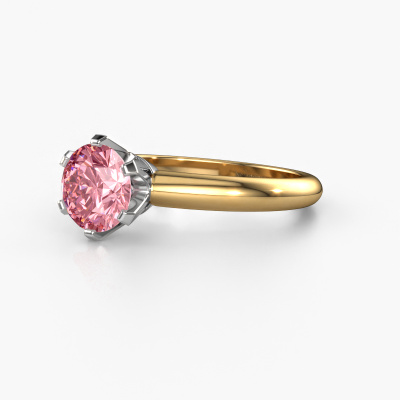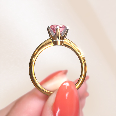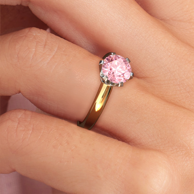 The ring shown above is called the Tiffy 1, we call this a solitaire ring because it contains a single gemstone. The engagement ring is made in 14 Carat gold and has a round pink lab grown diamond of 7 mm. The cool thing about our configurator is that you can compile your own piece of jewelry, into a completely personalized one. This solitaire ring is crafted in the precious metals gold with white gold, but of course you are free to pick your own colors. Each piece of jewelry is made just for you, with attention to detail and design.The solitaire ring is a special type of engagement ring. Its open prong setting allows light to strike the gemstone from various angles. This classic engagement ring is a stunning eye-catcher because of the high positioning of the gemstone. In order for you to commemorate your proposal with a unique ring, we carefully adorn this solitaire ring by hand. The love of your life deserves nothing but the best. By using our modern techniques, we can design and customize the finest quality jewels with the utmost care for you. Our engagement rings are always priced 30 percent lower than other jewelers. We make engagement rings to order so we don't have to maintain a large stock. If you have a certain budget, we are more than happy to advice you accordingly.Our designers and goldsmiths work together each day, creating new jewels. Perhaps you have found a nice classic engagement ring somewhere, which can be used to customize your unique ring. Please feel free to contact us. We will make you an offer, based on a fair price/ quality ratio, which will amaze you.To make it easier for you, we offer a 30 day return policy. Check our terms and conditions.