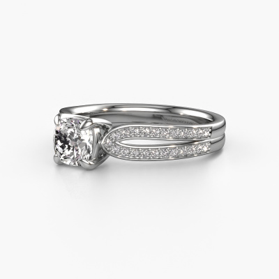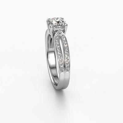 The ring shown above is called the Antonia cus 2. We call this type of ring a pavé solitaire ring because it has one center gemstone and a band that is also pave set with gemstones. The platinum engagement ring is set with a cushion 1.00 crt diamond center stone and the band is pave set with lab-grown diamond gemstones. Each jewel is made just for you by our master goldsmiths in our own studio.This fantasy platinum pavé solitaire engagement ring has an exquisite cushion diamond center stone. To further accentuate the center stone, the band is fully set with more lab grown diamonds. Its open prong setting allows light to strike the diamond from various angles and this adds sparkle to your diamond ring. The photo shown above depicts the goldsmith's carefully handcrafted details of the ring. The high positioning of the center stone is truly eye-catching. The perfect engagement ring for the crown jewel of your life! By using our modern techniques, we can design and customize the finest quality jewels with the utmost care for you. Our engagement rings are always priced 30 percent lower than other jewelers. We make engagement rings to order so we don't have to maintain a large stock. If you have a certain budget, we are more than happy to advice you accordingly.Have you found a specific engagement ring somewhere which you would like to give to your loved one? Please feel free to express your wishes to our jewel designers because we would be honored to turn your design into a fantasy engagement ring. You can follow the development of your ring design because we use 3D drawings. This gives you a realistic preview of how your design will look. You can also preorder a dummy. A dummy is a plastic ring, which can be shaped according your ring design. You can try it on and check if its width and size are suitable for you. We will gladly send you a non-binding offer, based on a fair price/ quality ratio. It will amaze you, considering the quality of the ring and gemstones.To make it easier for you, we offer a 30 day return policy. Check our terms and conditions.