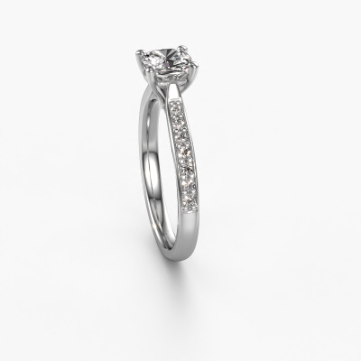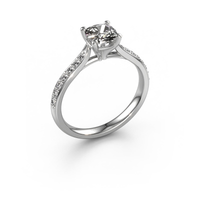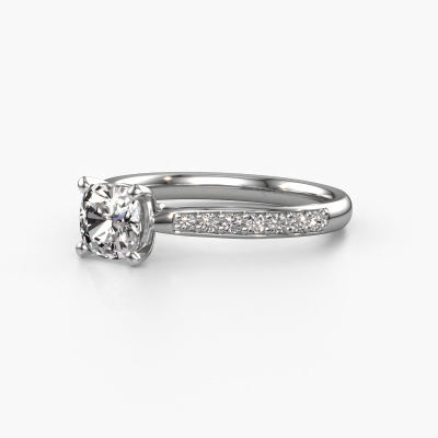 The ring shown above is called the Mignon cus 2. We call this type of ring a pavé solitaire ring because it has one center gemstone and a band that is also pave set with gemstones. The platinum engagement ring is set with a cushion 1.00 crt diamond center stone and the band is pave set with lab-grown diamond gemstones. Each jewel is made with passion and love by one of our master goldsmiths.This exclusive platinum pavé solitaire engagement ring has an exquisite cushion diamond center stone. To further accentuate the center stone, the band is fully set with more lab grown diamonds. Its open prong setting allows light to strike the diamond from various angles and this adds sparkle to your diamond ring. The photo shown above depicts the goldsmith's carefully handcrafted details of the ring. The high positioning of the center stone is truly eye-catching. The perfect engagement ring for the crown jewel of your life! After receiving your order, our goldsmiths will start the creative process of making your Mignon cus 2 engagement ring. We don't keep stock. This is advantageous because these costs will not be passed on to you. Therefore, we can offer jewelry at exceptionally low prices.Our team adds new designs to our online collection daily. Our designers and goldsmiths work together in creating the best design. We strive to offer a diverse collection of jewels. Perhaps you have a specific jewel design in mind. One you came across somewhere. Please contact us for a free consultation. We will make you an offer, based on a fair price/ quality ratio, that will baffle you.To make it easier for you, we offer a 30 day return policy. Check our terms and conditions.