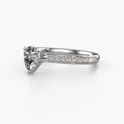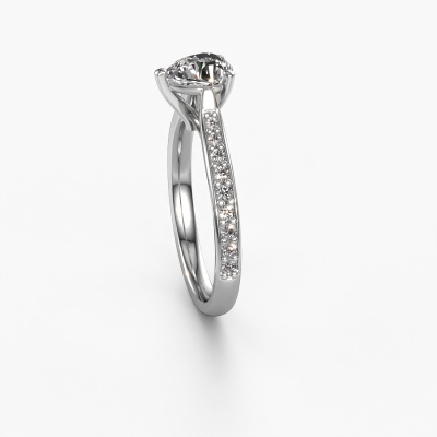 The ring shown above is called the Mignon per 2. We call this type of ring a pavé solitaire ring because it has one center gemstone and a band that is also pave set with gemstones. The platinum engagement ring is set with a pear 0.50 crt diamond center stone and the band is pave set with diamond gemstones. Each jewel is made just for you by our master goldsmiths in our own studio.This trendy platinum pavé solitaire engagement ring has an exquisite pear diamond center stone. To further accentuate the center stone, the band is fully set with more diamonds. Its open prong setting allows light to strike the diamond from various angles and this adds sparkle to your diamond ring. The photo shown above depicts the goldsmith's carefully handcrafted details of the ring. The high positioning of the center stone is truly eye-catching. The perfect engagement ring for the crown jewel of your life! Are you on a budget? Please feel free to contact us, so we can go discuss your options. We offer our engagement rings at guaranteed best price, because we make them to order. You won't find such a price anywhere else!Our team adds new designs to our online collection daily. Our designers and goldsmiths work together in creating the best design. We strive to offer a diverse collection of jewels. Perhaps you have a specific jewel design in mind. One you came across somewhere. Please contact us for a free consultation. We will make you an offer, based on a fair price/ quality ratio, that will baffle you.To make it easier for you, we offer a 30 day return policy. Check our terms and conditions.