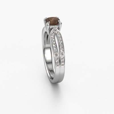 The ring shown above is called the Antonia cus 2. We call this type of ring a pavé solitaire ring because it has one center gemstone and a band that is also pave set with gemstones. The platinum engagement ring is set with a cushion 5 mm smokey quartz center stone and the band is pave set with lab-grown diamond gemstones. Each jewel is made just for you by our master goldsmiths in our own studio.This fantasy platinum pavé solitaire engagement ring has an exquisite cushion smokey quartz center stone. To further accentuate the center stone, the band is fully set with more lab grown diamonds. Its open prong setting allows light to strike the smokey quartz from various angles and this adds sparkle to your smokey quartz ring. The photo shown above depicts the goldsmith's carefully handcrafted details of the ring. The high positioning of the center stone is truly eye-catching. The perfect engagement ring for the crown jewel of your life! By using our modern techniques, we can design and customize the finest quality jewels with the utmost care for you. Our engagement rings are always priced 30 percent lower than other jewelers. We make engagement rings to order so we don't have to maintain a large stock. If you have a certain budget, we are more than happy to advice you accordingly.Have you found a specific engagement ring somewhere which you would like to give to your loved one? Please feel free to express your wishes to our jewel designers because we would be honored to turn your design into a fantasy engagement ring. You can follow the development of your ring design because we use 3D drawings. This gives you a realistic preview of how your design will look. You can also preorder a dummy. A dummy is a plastic ring, which can be shaped according your ring design. You can try it on and check if its width and size are suitable for you. We will gladly send you a non-binding offer, based on a fair price/ quality ratio. It will amaze you, considering the quality of the ring and gemstones.To make it easier for you, we offer a 30 day return policy. Check our terms and conditions.