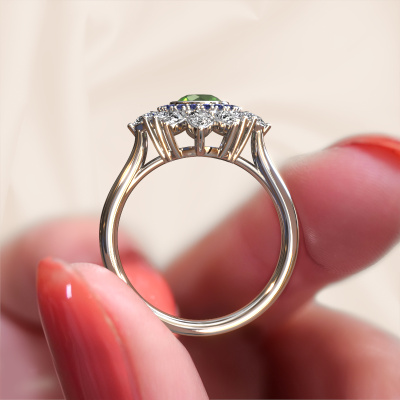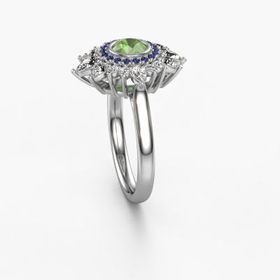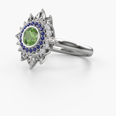 This platinum ring is called Tianna and is set with tourmaline green. An extraordinary platinum vintage ring. One that will surely make the love of your life shine like a diamond! That is what we hope to achieve. This vintage engagement ring is set with exquisite tourmaline green. Whichever gemstone you choose from our selection, is up to you. The gemstone is selected with great care because we believe your engagement ring must be adorned with nothing but the most beautiful gemstone. Wouldn't you agree? Our expert goldsmith will design your ring in our own artisan studio, where the tourmaline green will be set with great precision. The ring will then be polished till it is absolutely perfect. Nothing but the best for the love of your life! This jewel is made just for you by our master goldsmiths in our own studio.Because we design and deliver our own rings, we can offer you a engagement ring at a price you won't find anywhere else. A ring is made to order, which helps prevent excess supplies, so we can make you a great price offer. We understand it feels risky, buying your engagement ring online, but we will gladly assist in the designing process, taking your budget into consideration.Our team adds new designs to our online collection daily. Our designers and goldsmiths work together in creating the best design. We strive to offer a diverse collection of jewels. Perhaps you have a specific jewel design in mind. One you came across somewhere. Please contact us for a free consultation. We will make you an offer, based on a fair price/ quality ratio, that will baffle you.To make it easier for you, we offer a 30 day return policy. Check our terms and conditions.