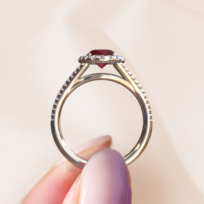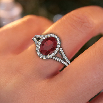 This platinum ring is called Verla ovl 2 and is set with 8x6 mm ruby. Does your girlfriend fancy exclusive jewelry? Or would you like to show her that she deserves the finest jewelry? This platinum ring is pure craftsmanship, love and passion combined with the latest techniques coming together in perfect harmony. It requires a keen eye, patience and a skillful hand to mold this ring into perfection. Just the job for our expert goldsmith! The ruby set gemstones gives this platinum ring an extra glamorous appearance. Customize the style of the split band engagement ring to her liking with a wide variety of precious metals and gemstones which you select. That is how you create a unique ring for the most exclusive woman in your life! This jewel is made by a team of passionate goldsmiths and jewel designers. This will make your crown jewel truly eye-catching.By using our modern techniques, we can design and customize the finest quality jewels with the utmost care for you. Our engagement rings are always priced 30 percent lower than other jewelers. We make engagement rings to order so we don't have to maintain a large stock. If you have a certain budget, we are more than happy to advice you accordingly.Our team adds new designs to our online collection daily. Our designers and goldsmiths work together in creating the best design. We strive to offer a diverse collection of jewels. Perhaps you have a specific jewel design in mind. One you came across somewhere. Please contact us for a free consultation. We will make you an offer, based on a fair price/ quality ratio, that will baffle you.To make it easier for you, we offer a 30 day return policy. Check our terms and conditions.