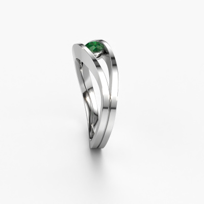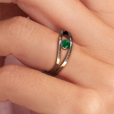 This platinum ring is called Sigrid 1 and is set with 3.7 mm emerald. This design platinum engagement ring is a true masterpiece! Our expert goldsmith uses special techniques during crafting of this tension set ring to make sure the emerald of this platinum ring is fixed properly. The effect is that light fall reflects beautifully on the gemstone, which gives the ring its maximum shine and glamorous appearance. The result is a unique ring, with a trendy appearance, passionately handcrafted to perfection by our artisan goldsmith. A one-of-a-kind ring, designed for the love of your life! This jewel is made to shine bright around your finger. Each jewel is hand made with love by our goldsmiths.By using our modern techniques, we can design and customize the finest quality jewels with the utmost care for you. Our engagement rings are always priced 30 percent lower than other jewelers. We make engagement rings to order so we don't have to maintain a large stock. If you have a certain budget, we are more than happy to advice you accordingly.Different styles of new rings are made daily by our team. Perhaps you have found a solitaire engagement ring somewhere. One you would like to give to your loved one. Please feel free to share your thoughts and design with our jewel designers. We would love to turn your design into a design engagement ring. You can follow the development of your ring design because we use very detailed 3D drawings. On top of that, you can order a dummy of the design. A dummy is a plastic ring, which can be shaped according your ring design. You can try it on and check if the engagement ring is up to standard. We will gladly send you a non-binding offer, based on a fair price/ quality ratio. The offer will baffle you, considering the quality of the ring and gemstones.To make it easier for you, we offer a 30 day return policy. Check our terms and conditions.