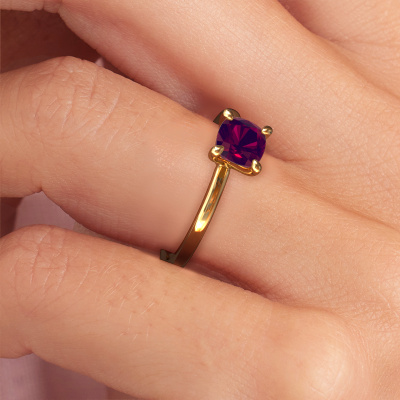 The ring shown above is called the Crystal CUS 1, we call this a solitaire ring because it contains a single gemstone. The engagement ring is made in 14 Carat gold and has a cushion rhodolite of 5.5 mm. The cool thing about our configurator is that you can compile your own piece of jewelry, into a completely personalized one. This solitaire ring is crafted in the precious metals gold with gold, but of course you are free to pick your own colors. Each piece of jewelry is made with passion and love by one of our master goldsmiths.The solitaire ring is a special type of engagement ring. Its open prong setting allows light to strike the gemstone from various angles. This contemporary engagement ring is a stunning eye-catcher because of the high positioning of the gemstone. In order for you to commemorate your proposal with a unique ring, we carefully adorn this solitaire ring by hand. The love of your life deserves nothing but the best. Because we design and deliver our own rings, we can offer you a engagement ring at a price you won't find anywhere else. A ring is made to order, which helps prevent excess supplies, so we can make you a great price offer. We understand it feels risky, buying your engagement ring online, but we will gladly assist in the designing process, taking your budget into consideration.Our team adds new designs to our online collection daily. Our designers and goldsmiths work together in creating the best design. We strive to offer a diverse collection of jewels. Perhaps you have a specific jewel design in mind. One you came across somewhere. Please contact us for a free consultation. We will make you an offer, based on a fair price/ quality ratio, that will baffle you.To make it easier for you, we offer a 30 day return policy. Check our terms and conditions.