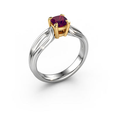 The ring shown above is called the Antonia cus 1, we call this a solitaire ring because it contains a single gemstone. The engagement ring is made in 14 Carat white gold and has a cushion rhodolite of 5 mm. The cool thing about our configurator is that you can compile your own piece of jewelry, into a completely personalized one. This solitaire ring is crafted in the precious metals white gold with gold, but of course you are free to pick your own colors. Each piece of jewelry is made by a team of passionate goldsmiths and jewel designers. This will make your crown jewel truly eye-catching.The solitaire ring is a special type of engagement ring. Its open prong setting allows light to strike the gemstone from various angles. This fantasy engagement ring is a stunning eye-catcher because of the high positioning of the gemstone. In order for you to commemorate your proposal with a unique ring, we carefully adorn this solitaire ring by hand. The love of your life deserves nothing but the best. Are you on a budget? Please feel free to contact us, so we can go discuss your options. We offer our engagement rings at guaranteed best price, because we make them to order. You won't find such a price anywhere else!Our team adds new designs to our online collection daily. Our designers and goldsmiths work together in creating the best design. We strive to offer a diverse collection of jewels. Perhaps you have a specific jewel design in mind. One you came across somewhere. Please contact us for a free consultation. We will make you an offer, based on a fair price/ quality ratio, that will baffle you.To make it easier for you, we offer a 30 day return policy. Check our terms and conditions.