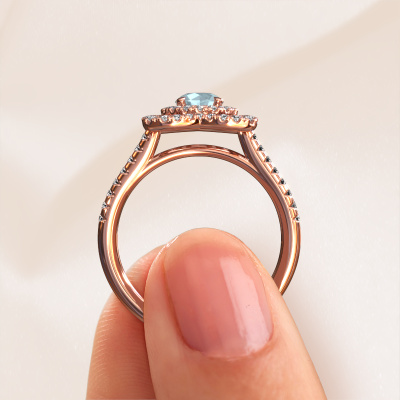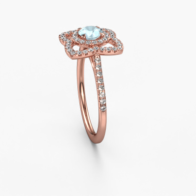 This 14 Carat rose gold ring is called Cleopatra and is set with aquamarine. An extraordinary rose gold vintage ring. One that will surely make the love of your life shine like a diamond! That is what we hope to achieve. This vintage engagement ring is set with exquisite aquamarine. Whichever gemstone you choose from our selection, is up to you. The gemstone is selected with great care because we believe your engagement ring must be adorned with nothing but the most beautiful gemstone. Wouldn't you agree? Our expert goldsmith will design your ring in our own artisan studio, where the aquamarine will be set with great precision. The ring will then be polished till it is absolutely perfect. Nothing but the best for the love of your life! This jewel is made just for you, with attention to detail and design.After receiving your order, our goldsmiths will passionately start the creative process of making your engagement ring in our own studio. Because we don't have a big stockpile, these costs will not be passed on to you. Our pricing is proof of that! We offer top quality jewels at lowest price, guaranteed.Have you found a specific engagement ring somewhere which you would like to give to your loved one? Please feel free to express your wishes to our jewel designers because we would be honored to turn your design into a vintage engagement ring. You can follow the development of your ring design because we use 3D drawings. This gives you a realistic preview of how your design will look. You can also preorder a dummy. A dummy is a plastic ring, which can be shaped according your ring design. You can try it on and check if its width and size are suitable for you. We will gladly send you a non-binding offer, based on a fair price/ quality ratio. It will amaze you, considering the quality of the ring and gemstones.To make it easier for you, we offer a 30 day return policy. Check our terms and conditions.