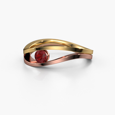 This 14 Carat rose gold ring is called Sigrid 1 and is set with 3.7 mm ruby. This design rose gold engagement ring is a true masterpiece! Our expert goldsmith uses special techniques during crafting of this tension set ring to make sure the ruby of this rose gold ring is fixed properly. The effect is that light fall reflects beautifully on the gemstone, which gives the ring its maximum shine and glamorous appearance. The result is a unique ring, with a trendy appearance, passionately handcrafted to perfection by our artisan goldsmith. A one-of-a-kind ring, designed for the love of your life! This jewel is made to shine bright around your finger. Each jewel is hand made with love by our goldsmiths.By using our modern techniques, we can design and customize the finest quality jewels with the utmost care for you. Our engagement rings are always priced 30 percent lower than other jewelers. We make engagement rings to order so we don't have to maintain a large stock. If you have a certain budget, we are more than happy to advice you accordingly.Different styles of new rings are made daily by our team. Perhaps you have found a solitaire engagement ring somewhere. One you would like to give to your loved one. Please feel free to share your thoughts and design with our jewel designers. We would love to turn your design into a design engagement ring. You can follow the development of your ring design because we use very detailed 3D drawings. On top of that, you can order a dummy of the design. A dummy is a plastic ring, which can be shaped according your ring design. You can try it on and check if the engagement ring is up to standard. We will gladly send you a non-binding offer, based on a fair price/ quality ratio. The offer will baffle you, considering the quality of the ring and gemstones.To make it easier for you, we offer a 30 day return policy. Check our terms and conditions.