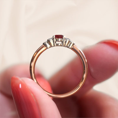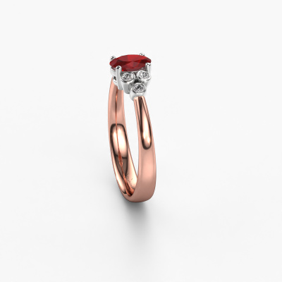 This 14 Carat rose gold ring is called Lucy 1 and is set with ruby. How would you describe the style of the love of your life? Does she have a unique sense of style? This stunning beautiful rose gold engagement ring can be custom made to your own or her liking. Our ruby gemstones have been carefully selected because we believe your classic engagement ring must be adorned with nothing but the most beautiful gemstone. Don't you agree? This jewel is created to add sparkle to your finger, each jewel is lovingly made by hand by our goldsmiths.Because we design and deliver our own rings, we can offer you a engagement ring at a price you won't find anywhere else. A ring is made to order, which helps prevent excess supplies, so we can make you a great price offer. We understand it feels risky, buying your engagement ring online, but we will gladly assist in the designing process, taking your budget into consideration.Our team adds new designs to our online collection daily. Our designers and goldsmiths work together in creating the best design. We strive to offer a diverse collection of jewels. Perhaps you have a specific jewel design in mind. One you came across somewhere. Please contact us for a free consultation. We will make you an offer, based on a fair price/ quality ratio, that will baffle you.To make it easier for you, we offer a 30 day return policy. Check our terms and conditions.