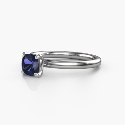 In your eyes, no one else compares to her. She is one in a million, unlike anyone else and pure? These qualities are emphasized perfectly by our fashionable platinum solitaire sapphire ring. This sapphire is carefully selected by our keen artisan goldsmiths. It equals the unique qualities of the love of your life. There is no better way to memorialize your proposal than this symbol of true love. The ring shown above is called the Simone CUS 1, we call this a solitaire ring because it contains a single gemstone. The engagement ring is made in platinum and has a cushion sapphire of 5.5 mm. Each piece of jewelry is made by a team of passionate goldsmiths and jewel designers. This will make your crown jewel truly eye-catching.By using a combination of the latest modern techniques, combined with ancient crafting, we can make all our engagement rings in our own studio. Each jewel is made to order. This is advantageous because we can offer you a price you won't find anywhere else.Our team adds new designs to our online collection daily. Our designers and goldsmiths work together in creating the best design. We strive to offer a diverse collection of jewels. Perhaps you have a specific jewel design in mind. One you came across somewhere. Please contact us for a free consultation. We will make you an offer, based on a fair price/ quality ratio, that will baffle you.To make it easier for you, we offer a 30 day return policy. Check our terms and conditions.