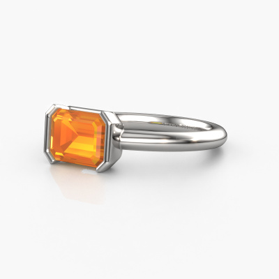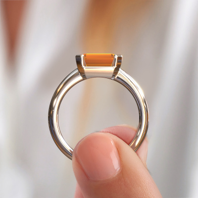 The ring shown above is called the Tayler EME, we call this a solitaire ring because it contains a single gemstone. The engagement ring is made in platinum and has a emerald cut citrin of 8x6 mm. This modern platinum solitaire ring with exquisite emerald cut citrin is a beautiful engagement ring. The open prong setting allows light to strike the gemstone from various angles. The ring also stands out because of the high positioning of the gemstone. Because diamonds symbolize true love and purity, they make the perfect gift for the love of your life. The symbol of eternal love is the centerpiece of this solitaire ring. Like a diamond, all other types of precious metal have their own attributed symbolic meaning. You can compile the solitaire engagement ring yourself in various precious metal combinations. This one has the combination of platinum with platinum. Each piece of jewelry is created to add sparkle to your finger, each jewel is lovingly made by hand by our goldsmiths.After receiving your order, our goldsmiths will passionately start the creative process of making your engagement ring in our own studio. Because we don't have a big stockpile, these costs will not be passed on to you. Our pricing is proof of that! We offer top quality jewels at lowest price, guaranteed.Our designers and goldsmiths work together each day, creating new jewels. Perhaps you have found a nice modern engagement ring somewhere, which can be used to customize your unique ring. Please feel free to contact us. We will make you an offer, based on a fair price/ quality ratio, which will amaze you.To make it easier for you, we offer a 30 day return policy. Check our terms and conditions.