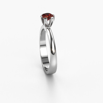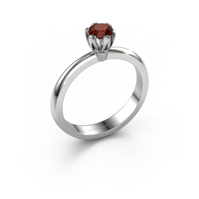 The ring shown above is called the Julia, we call this a solitaire ring because it contains a single gemstone. The engagement ring is made in platinum and has a round garnet of 4 mm. This trendy platinum solitaire ring with exquisite round garnet is a beautiful engagement ring. The open prong setting allows light to strike the gemstone from various angles. The ring also stands out because of the high positioning of the gemstone. Because diamonds symbolize true love and purity, they make the perfect gift for the love of your life. The symbol of eternal love is the centerpiece of this solitaire ring. Like a diamond, all other types of precious metal have their own attributed symbolic meaning. You can compile the solitaire engagement ring yourself in various precious metal combinations. This one has the combination of platinum with platinum. Each piece of jewelry is created to add sparkle to your finger, each jewel is lovingly made by hand by our goldsmiths.Are you on a budget? Please feel free to contact us, so we can go discuss your options. We offer our engagement rings at guaranteed best price, because we make them to order. You won't find such a price anywhere else!Different styles of new rings are made daily by our team. Perhaps you have found a solitaire engagement ring somewhere. One you would like to give to your loved one. Please feel free to share your thoughts and design with our jewel designers. We would love to turn your design into a trendy engagement ring. You can follow the development of your ring design because we use very detailed 3D drawings. On top of that, you can order a dummy of the design. A dummy is a plastic ring, which can be shaped according your ring design. You can try it on and check if the engagement ring is up to standard. We will gladly send you a non-binding offer, based on a fair price/ quality ratio. The offer will baffle you, considering the quality of the ring and gemstones.To make it easier for you, we offer a 30 day return policy. Check our terms and conditions.