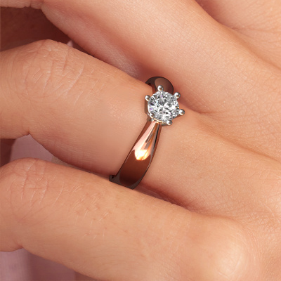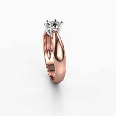 The ring shown above is called the Fay, we call this a solitaire ring because it contains a single gemstone. The engagement ring is made in 14 Carat rose gold and has a round lab-grown diamond of 0.50 crt. This traditional rose gold solitaire ring with exquisite round lab-grown diamond is a beautiful engagement ring. The open prong setting allows light to strike the gemstone from various angles. The ring also stands out because of the high positioning of the gemstone. Because diamonds symbolize true love and purity, they make the perfect gift for the love of your life. The symbol of eternal love is the centerpiece of this solitaire ring. Like a diamond, all other types of precious metal have their own attributed symbolic meaning. You can compile the solitaire engagement ring yourself in various precious metal combinations. This one has the combination of 14 Carat rose gold with white gold. Each piece of jewelry is made just for you by our master goldsmiths in our own studio.By using a combination of the latest modern techniques, combined with ancient crafting, we can make all our engagement rings in our own studio. Each jewel is made to order. This is advantageous because we can offer you a price you won't find anywhere else.Have you found a specific engagement ring somewhere which you would like to give to your loved one? Please feel free to express your wishes to our jewel designers because we would be honored to turn your design into a traditional engagement ring. You can follow the development of your ring design because we use 3D drawings. This gives you a realistic preview of how your design will look. You can also preorder a dummy. A dummy is a plastic ring, which can be shaped according your ring design. You can try it on and check if its width and size are suitable for you. We will gladly send you a non-binding offer, based on a fair price/ quality ratio. It will amaze you, considering the quality of the ring and gemstones.To make it easier for you, we offer a 30 day return policy. Check our terms and conditions.