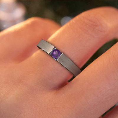 This 14 Carat white gold ring is called Lizzy 1 and is set with amethyst. Do you keep up with the latest fashion trends? Do you want a unique engagement ring that matches your lifestyle? This edgy engagement ring is an extraordinary ring which can be custom made to fit your or her personal style. This modern white gold engagement ring is set with amethyst. Our amethysten are carefully selected for this specific ring in order to create the best effect. Our expert goldsmith will create your ring in our own artisan studio where the amethyst will be set with great care. The ring will then be polished to perfection. Nothing but the best for the love of your life! This jewel is created to add sparkle to your finger, each jewel is lovingly made by hand by our goldsmiths.By using our modern techniques, we can design and customize the finest quality jewels with the utmost care for you. Our engagement rings are always priced 30 percent lower than other jewelers. We make engagement rings to order so we don't have to maintain a large stock. If you have a certain budget, we are more than happy to advice you accordingly.Do you have a specific ring in mind? One you came across somewhere. Please feel free to tell us your wishes and we will turn your design into a unique engagement ring. You can follow the development of your ring design because we use 3D drawings. This gives you a realistic preview of your design. We will gladly send you a non-binding offer, based on a fair price/ quality ratio. It will amaze you.To make it easier for you, we offer a 30 day return policy. Check our terms and conditions.