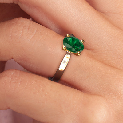 The ring shown above is called the Mignon ovl 1, we call this a solitaire ring because it contains a single gemstone. The engagement ring is made in 14 Carat white gold and has a oval emerald of 8x6 mm. This traditional white gold solitaire ring with exquisite oval emerald is a beautiful engagement ring. The open prong setting allows light to strike the gemstone from various angles. The ring also stands out because of the high positioning of the gemstone. Because diamonds symbolize true love and purity, they make the perfect gift for the love of your life. The symbol of eternal love is the centerpiece of this solitaire ring. Like a diamond, all other types of precious metal have their own attributed symbolic meaning. You can compile the solitaire engagement ring yourself in various precious metal combinations. This one has the combination of 14 Carat white gold with gold. Each piece of jewelry is made by a team of passionate goldsmiths and jewel designers. This will make your crown jewel truly eye-catching.By using a combination of the latest modern techniques, combined with ancient crafting, we can make all our engagement rings in our own studio. Each jewel is made to order. This is advantageous because we can offer you a price you won't find anywhere else.Our designers and goldsmiths work together each day, creating new jewels. Perhaps you have found a nice traditional engagement ring somewhere, which can be used to customize your unique ring. Please feel free to contact us. We will make you an offer, based on a fair price/ quality ratio, which will amaze you.To make it easier for you, we offer a 30 day return policy. Check our terms and conditions.