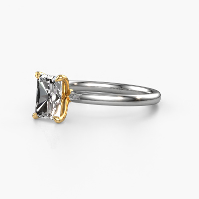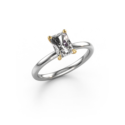 The ring shown above is called the Crystal RAD 1, we call this a solitaire ring because it contains a single gemstone. The engagement ring is made in 14 Carat white gold and has a radiant lab-grown diamond of 1.00 crt. This modern white gold solitaire ring with exquisite radiant lab-grown diamond is a beautiful engagement ring. The open prong setting allows light to strike the gemstone from various angles. The ring also stands out because of the high positioning of the gemstone. Because diamonds symbolize true love and purity, they make the perfect gift for the love of your life. The symbol of eternal love is the centerpiece of this solitaire ring. Like a diamond, all other types of precious metal have their own attributed symbolic meaning. You can compile the solitaire engagement ring yourself in various precious metal combinations. This one has the combination of 14 Carat white gold with gold. Each piece of jewelry is made by a team of passionate goldsmiths and jewel designers. This will make your crown jewel truly eye-catching.After receiving your order, our goldsmiths will passionately start the creative process of making your engagement ring in our own studio. Because we don't have a big stockpile, these costs will not be passed on to you. Our pricing is proof of that! We offer top quality jewels at lowest price, guaranteed.Have you found a specific engagement ring somewhere which you would like to give to your loved one? Please feel free to express your wishes to our jewel designers because we would be honored to turn your design into a modern engagement ring. You can follow the development of your ring design because we use 3D drawings. This gives you a realistic preview of how your design will look. You can also preorder a dummy. A dummy is a plastic ring, which can be shaped according your ring design. You can try it on and check if its width and size are suitable for you. We will gladly send you a non-binding offer, based on a fair price/ quality ratio. It will amaze you, considering the quality of the ring and gemstones.To make it easier for you, we offer a 30 day return policy. Check our terms and conditions.