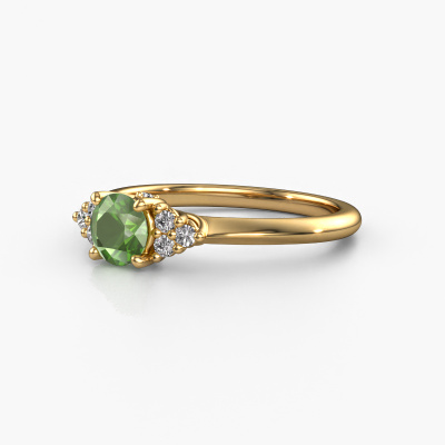 This 14 Carat gold ring is called Felipa RND and is set with 5 mm tourmaline green. What is it that makes your relationship unique? What is it about her that makes you want to bend down on one knee? The unique bond between the two of you is emphasized by an equally unique ring. A one of a kind ajour 3-stone engagement ring made especially for her. That is why this fantasy ring fits her like a glove. Each specific detail of this ajour gold tourmaline green set engagement ring is hand-picked, crafted and polished by our expert goldsmith. The result is an exquisite ring, unique and perfectly crafted to perfection. That is what our expert Goldsmiths strive for. This jewel is made just for you by our master goldsmiths in our own studio.After receiving your order, our goldsmiths will passionately start the creative process of making your engagement ring in our own studio. Because we don't have a big stockpile, these costs will not be passed on to you. Our pricing is proof of that! We offer top quality jewels at lowest price, guaranteed.Have you found a specific engagement ring somewhere which you would like to give to your loved one? Please feel free to express your wishes to our jewel designers because we would be honored to turn your design into a fantasy engagement ring. You can follow the development of your ring design because we use 3D drawings. This gives you a realistic preview of how your design will look. You can also preorder a dummy. A dummy is a plastic ring, which can be shaped according your ring design. You can try it on and check if its width and size are suitable for you. We will gladly send you a non-binding offer, based on a fair price/ quality ratio. It will amaze you, considering the quality of the ring and gemstones.To make it easier for you, we offer a 30 day return policy. Check our terms and conditions.