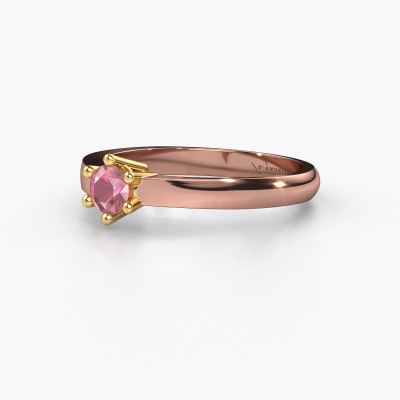 The ring shown above is called the Luna 1, we call this a solitaire ring because it contains a single gemstone. The engagement ring is made in 14 Carat rose gold and has a round tourmaline pink of 3.7 mm. The cool thing about our configurator is that you can compile your own piece of jewelry, into a completely personalized one. This solitaire ring is crafted in the precious metals rose gold with gold, but of course you are free to pick your own colors. Each piece of jewelry is made with passion and love by one of our master goldsmiths.The solitaire ring is a special type of engagement ring. Its open prong setting allows light to strike the gemstone from various angles. This classic engagement ring is a stunning eye-catcher because of the high positioning of the gemstone. In order for you to commemorate your proposal with a unique ring, we carefully adorn this solitaire ring by hand. The love of your life deserves nothing but the best. After receiving your order, our goldsmiths will start the creative process of making your Luna 1 engagement ring. We don't keep stock. This is advantageous because these costs will not be passed on to you. Therefore, we can offer jewelry at exceptionally low prices.Our designers and goldsmiths work together each day, creating new jewels. Perhaps you have found a nice classic engagement ring somewhere, which can be used to customize your unique ring. Please feel free to contact us. We will make you an offer, based on a fair price/ quality ratio, which will amaze you.To make it easier for you, we offer a 30 day return policy. Check our terms and conditions.