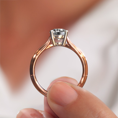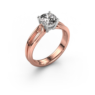 The ring shown above is called the Antonia rnd 1. We call this a solitaire ring because it contains a single gemstone. The engagement ring is made in 14 Carat rose gold and has a round diamond of 1.00 crt. This extraordinary traditional rose gold solitaire engagement ring is set with a beautiful round diamond to add sparkle to your proposal. The open prong setting allows light to strike the gemstone from various angles. Did you know a diamond represents everlasting love and fidelity? This makes it a perfect centerpiece. Our goldsmith carefully positions the gemstone of your choosing high on top of the ring, which makes it stand out. Each piece of jewelry is made just for you by our master goldsmiths in our own studio.Are you on a budget? Please feel free to contact us, so we can go discuss your options. We offer our engagement rings at guaranteed best price, because we make them to order. You won't find such a price anywhere else!Different styles of new rings are made daily by our team. Perhaps you have found a solitaire engagement ring somewhere. One you would like to give to your loved one. Please feel free to share your thoughts and design with our jewel designers. We would love to turn your design into a traditional engagement ring. You can follow the development of your ring design because we use very detailed 3D drawings. On top of that, you can order a dummy of the design. A dummy is a plastic ring, which can be shaped according your ring design. You can try it on and check if the engagement ring is up to standard. We will gladly send you a non-binding offer, based on a fair price/ quality ratio. The offer will baffle you, considering the quality of the ring and gemstones.To make it easier for you, we offer a 30 day return policy. Check our terms and conditions.