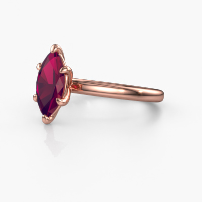 This 14 Carat rose gold ring is called Simone MRQ 1 and is set with 11x5.5 mm rhodolite. Are you looking for a unique rose gold engagement ring which you can customize to your own liking? This unique engagement ring is set with rhodolite which is carefully selected for this specific ring in order to create the best effect. Our expert goldsmith will create your ring in our own crafting studio, where the rhodolite will be set with great care. The ring will then be polished till it shines perfectly. Nothing but the best for the love of your life! The great thing about our online tool is, that you can compile your own jewelry into a unique, personalized piece. Each piece of jewelry is made just for you by our master goldsmiths in our own studio.Because we design and deliver our own rings, we can offer you a engagement ring at a price you won't find anywhere else. A ring is made to order, which helps prevent excess supplies, so we can make you a great price offer. We understand it feels risky, buying your engagement ring online, but we will gladly assist in the designing process, taking your budget into consideration.Our designers and goldsmiths work together each day, creating new jewels. Perhaps you have found a nice unique engagement ring somewhere, which can be used to customize your unique ring. Please feel free to contact us. We will make you an offer, based on a fair price/ quality ratio, which will amaze you.To make it easier for you, we offer a 30 day return policy. Check our terms and conditions.