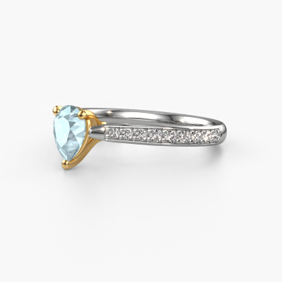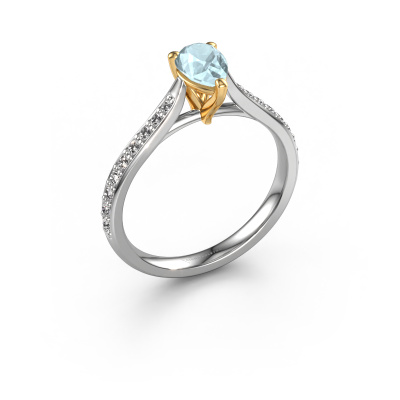 The ring shown above is called the Mignon per 2. We call this type of ring a pavé solitaire ring because it has one center gemstone and a band that is also pave set with gemstones. The 14 Carat white gold engagement ring is set with a pear 6.5x4.5 mm aquamarine center stone and the band is pave set with diamond gemstones. Each jewel is made just for you by our master goldsmiths in our own studio.This trendy white gold pavé solitaire engagement ring has an exquisite pear aquamarine center stone. To further accentuate the center stone, the band is fully set with more diamonds. Its open prong setting allows light to strike the aquamarine from various angles and this adds sparkle to your aquamarine ring. The photo shown above depicts the goldsmith's carefully handcrafted details of the ring. The high positioning of the center stone is truly eye-catching. The perfect engagement ring for the crown jewel of your life! Are you on a budget? Please feel free to contact us, so we can go discuss your options. We offer our engagement rings at guaranteed best price, because we make them to order. You won't find such a price anywhere else!Our team adds new designs to our online collection daily. Our designers and goldsmiths work together in creating the best design. We strive to offer a diverse collection of jewels. Perhaps you have a specific jewel design in mind. One you came across somewhere. Please contact us for a free consultation. We will make you an offer, based on a fair price/ quality ratio, that will baffle you.To make it easier for you, we offer a 30 day return policy. Check our terms and conditions.