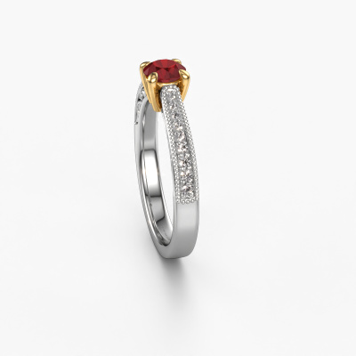 This 14 Carat white gold ring is called Shonta RND and is set with 4.7 mm ruby. This filigree white gold engagement ring is a true work of art! A beautifully adorned design of intricate wires. With dedication, patience and the utmost precision, our expert goldsmith will design a ring just for you. The adornment of small wiring is crafted to perfection by hand. It's a lengthy process which includes welding, crafting and polishing until our Goldsmiths are completely satisfied with the result: a perfect eye-catching ring that makes her shine with delight. Therefore the vintage filigree engagement ring is an extraordinary gift to bestow upon the love of your life. A handmade one-of-a-kind personalized ring, to be given to that special someone on that special moment when you pop the question. Isn't that wonderful? This piece of jewelry is made just for you by our master goldsmiths in our own studio.By using our modern techniques, we can design and customize the finest quality jewels with the utmost care for you. Our engagement rings are always priced 30 percent lower than other jewelers. We make engagement rings to order so we don't have to maintain a large stock. If you have a certain budget, we are more than happy to advice you accordingly.Our team adds new designs to our online collection daily. Our designers and goldsmiths work together in creating the best design. We strive to offer a diverse collection of jewels. Perhaps you have a specific jewel design in mind. One you came across somewhere. Please contact us for a free consultation. We will make you an offer, based on a fair price/ quality ratio, that will baffle you.To make it easier for you, we offer a 30 day return policy. Check our terms and conditions.