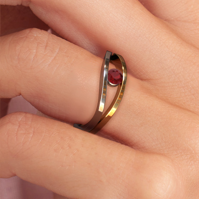 This 14 Carat white gold ring is called Sigrid 1 and is set with 3.7 mm ruby. This design white gold engagement ring is a true masterpiece! Our expert goldsmith uses special techniques during crafting of this tension set ring to make sure the ruby of this white gold ring is fixed properly. The effect is that light fall reflects beautifully on the gemstone, which gives the ring its maximum shine and glamorous appearance. The result is a unique ring, with a trendy appearance, passionately handcrafted to perfection by our artisan goldsmith. A one-of-a-kind ring, designed for the love of your life! This jewel is made to shine bright around your finger. Each jewel is hand made with love by our goldsmiths.By using our modern techniques, we can design and customize the finest quality jewels with the utmost care for you. Our engagement rings are always priced 30 percent lower than other jewelers. We make engagement rings to order so we don't have to maintain a large stock. If you have a certain budget, we are more than happy to advice you accordingly.Different styles of new rings are made daily by our team. Perhaps you have found a solitaire engagement ring somewhere. One you would like to give to your loved one. Please feel free to share your thoughts and design with our jewel designers. We would love to turn your design into a design engagement ring. You can follow the development of your ring design because we use very detailed 3D drawings. On top of that, you can order a dummy of the design. A dummy is a plastic ring, which can be shaped according your ring design. You can try it on and check if the engagement ring is up to standard. We will gladly send you a non-binding offer, based on a fair price/ quality ratio. The offer will baffle you, considering the quality of the ring and gemstones.To make it easier for you, we offer a 30 day return policy. Check our terms and conditions.