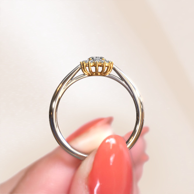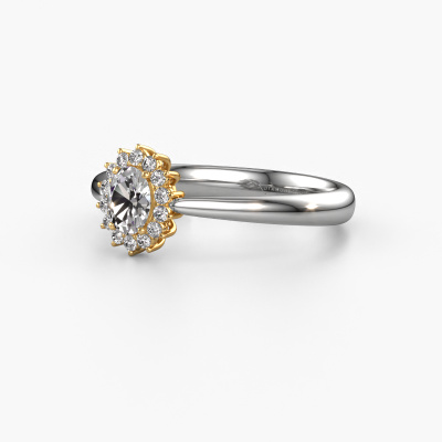 The ring shown above is called the Tilly ovl 1. We call this type of ring a cluster ring, the center gemstone is surrounded by smaller sized stones. This 14 Carat white gold version is set with a 0.35 crt oval diamond center stone, embraced by smaller lab grown diamonds. The classic white gold cluster engagement ring stands out because of its shape. Together, the smaller and bigger sized diamond gemstones form a flower and they appear to collide into one big sparkling gem. This classic engagement ring is also known as the flower ring. Our expert Goldsmiths make sure the smaller lab grown diamonds stones are set identically so there is no light interference in the diamond but unity instead. With perfect precision and a skillful hand each diamond is set in the ring. During manufacturing, it is constantly monitored to make sure light reflects flawlessly. This results in a unique engagement ring, with a radiant diamond at its centre. A lovely, meaningful gift to bestow upon the love of your life. By using a combination of the latest modern techniques, combined with ancient crafting, we can make all our engagement rings in our own studio. Each jewel is made to order. This is advantageous because we can offer you a price you won't find anywhere else.Do you have a specific ring in mind? One you came across somewhere. Please feel free to tell us your wishes and we will turn your design into a unique engagement ring. You can follow the development of your ring design because we use 3D drawings. This gives you a realistic preview of your design. We will gladly send you a non-binding offer, based on a fair price/ quality ratio. It will amaze you.To make it easier for you, we offer a 30 day return policy. Check our terms and conditions.