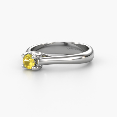 The ring shown above is called the Nisa, we call this a solitaire ring because it contains a single gemstone. The engagement ring is made in platinum and has a round yellow sapphire of 4.2 mm. The cool thing about our configurator is that you can compile your own piece of jewelry, into a completely personalized one. This solitaire ring is crafted in the precious metals platinum with platinum, but of course you are free to pick your own colors. Each piece of jewelry is made by a team of passionate goldsmiths and jewel designers. This will make your crown jewel truly eye-catching.The solitaire ring is a special type of engagement ring. Its open prong setting allows light to strike the gemstone from various angles. This unique engagement ring is a stunning eye-catcher because of the high positioning of the gemstone. In order for you to commemorate your proposal with a unique ring, we carefully adorn this solitaire ring by hand. The love of your life deserves nothing but the best. Are you on a budget? Please feel free to contact us, so we can go discuss your options. We offer our engagement rings at guaranteed best price, because we make them to order. You won't find such a price anywhere else!Our designers and goldsmiths work together each day, creating new jewels. Perhaps you have found a nice unique engagement ring somewhere, which can be used to customize your unique ring. Please feel free to contact us. We will make you an offer, based on a fair price/ quality ratio, which will amaze you.To make it easier for you, we offer a 30 day return policy. Check our terms and conditions.