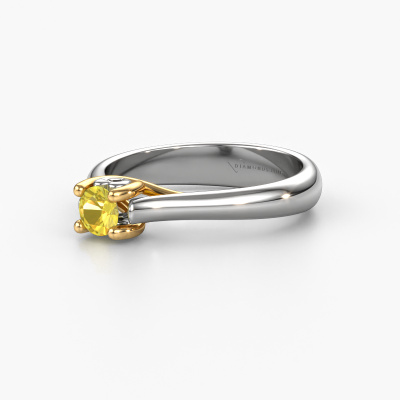 The ring shown above is called the Nisa, we call this a solitaire ring because it contains a single gemstone. The engagement ring is made in 14 Carat white gold and has a round yellow sapphire of 4.2 mm. The cool thing about our configurator is that you can compile your own piece of jewelry, into a completely personalized one. This solitaire ring is crafted in the precious metals white gold with gold, but of course you are free to pick your own colors. Each piece of jewelry is made by a team of passionate goldsmiths and jewel designers. This will make your crown jewel truly eye-catching.The solitaire ring is a special type of engagement ring. Its open prong setting allows light to strike the gemstone from various angles. This unique engagement ring is a stunning eye-catcher because of the high positioning of the gemstone. In order for you to commemorate your proposal with a unique ring, we carefully adorn this solitaire ring by hand. The love of your life deserves nothing but the best. Are you on a budget? Please feel free to contact us, so we can go discuss your options. We offer our engagement rings at guaranteed best price, because we make them to order. You won't find such a price anywhere else!Our designers and goldsmiths work together each day, creating new jewels. Perhaps you have found a nice unique engagement ring somewhere, which can be used to customize your unique ring. Please feel free to contact us. We will make you an offer, based on a fair price/ quality ratio, which will amaze you.To make it easier for you, we offer a 30 day return policy. Check our terms and conditions.