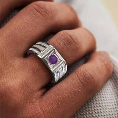 Are you looking for a unique platinum men's ring that is slightly different? Then our rectangular platinum amethyst set Lando men's ring is the perfect ring for you! This ring, as shown here, is made of platinum but feel free to customize to your liking. Show them what you are all about with this platinum amethysten Lando men's ring, a ring for ambitious men. How do you like this unique platinum men's ring? Simply customize this Lando men's ring, using our online tool. Subsequently, your personal royal Lando men's ring will be made by hand by our goldsmiths. Precious metals and gemstones can be customized to your liking. Do you have specific preferences which are unavailable in our online tool? Please feel free to contact us. We will customize your personal unique men's ring to your liking.New jewelry designs are added to our online collection daily. Our team of passionate designers strive to create extraordinary and diverse designs. Have you seen a ring you like? Please feel free to contact us. Based on a good price/ quality ratio, we will make you an offer you can't refuse!Because we design and deliver our own rings, we can offer you a ring at a price you won't find anywhere else. A ring is made to order, which helps prevent excess supplies, so we can make you a great price offer. We understand it feels risky, buying your ring online, but we will gladly assist in the designing process, taking your budget into consideration.To make it easier for you, we offer a 30 day return policy. Check our terms and conditions.